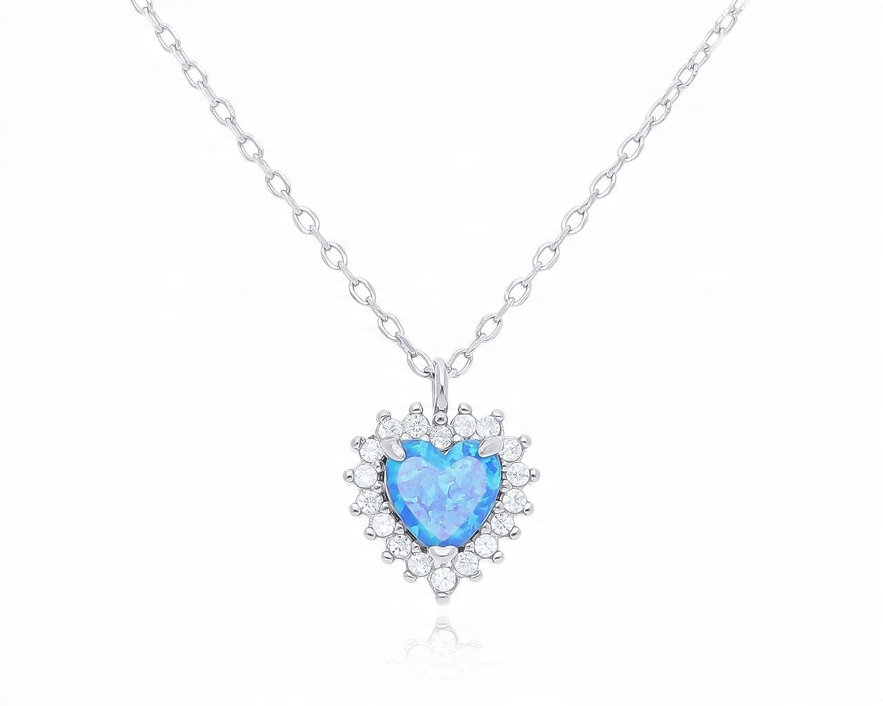 Naszyjnik srebrny serce z niebieskim opalem Srebro 925