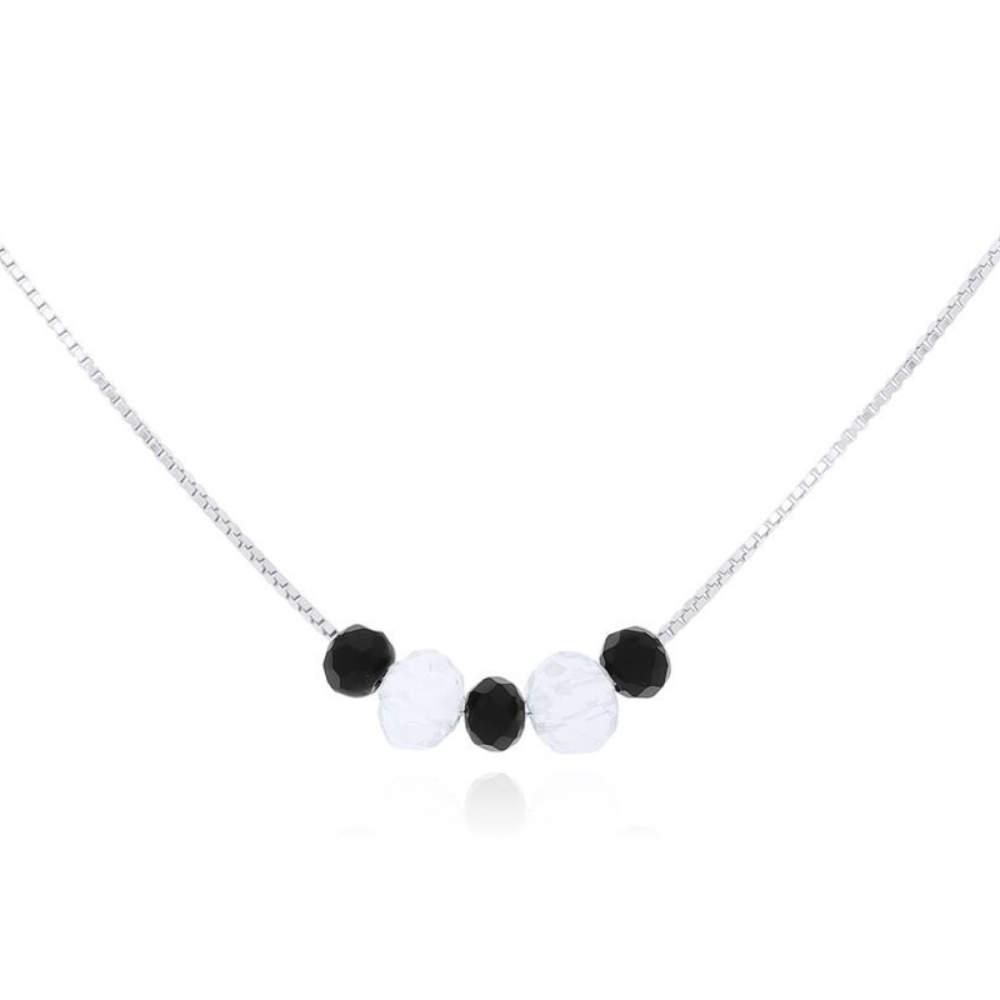 Naszyjnik srebrny z czarnymi i białymi cyrkoniami Srebro 925
