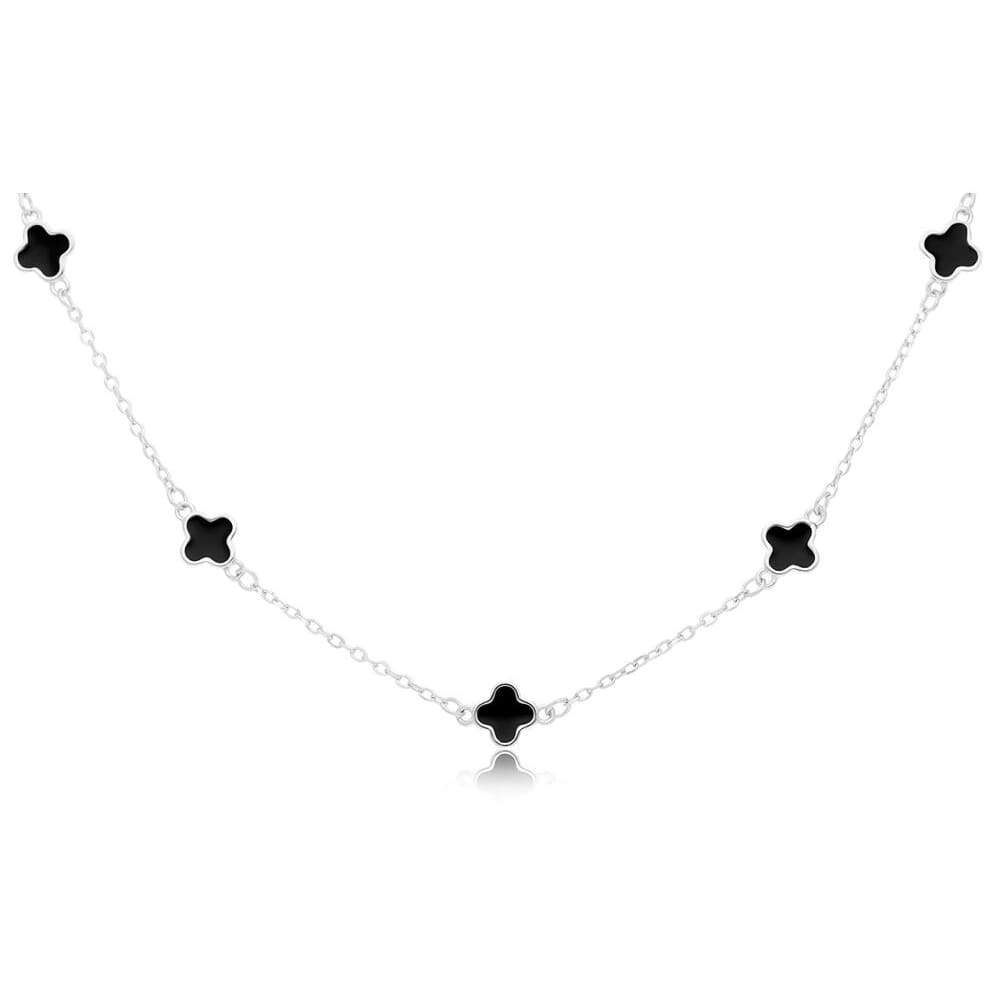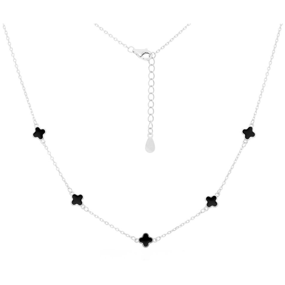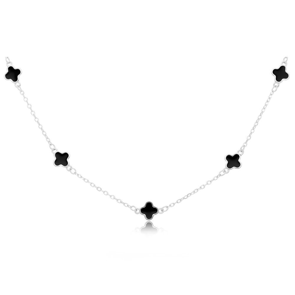 Naszyjnik srebrny z koniczynami czarna emalia Srebro 925