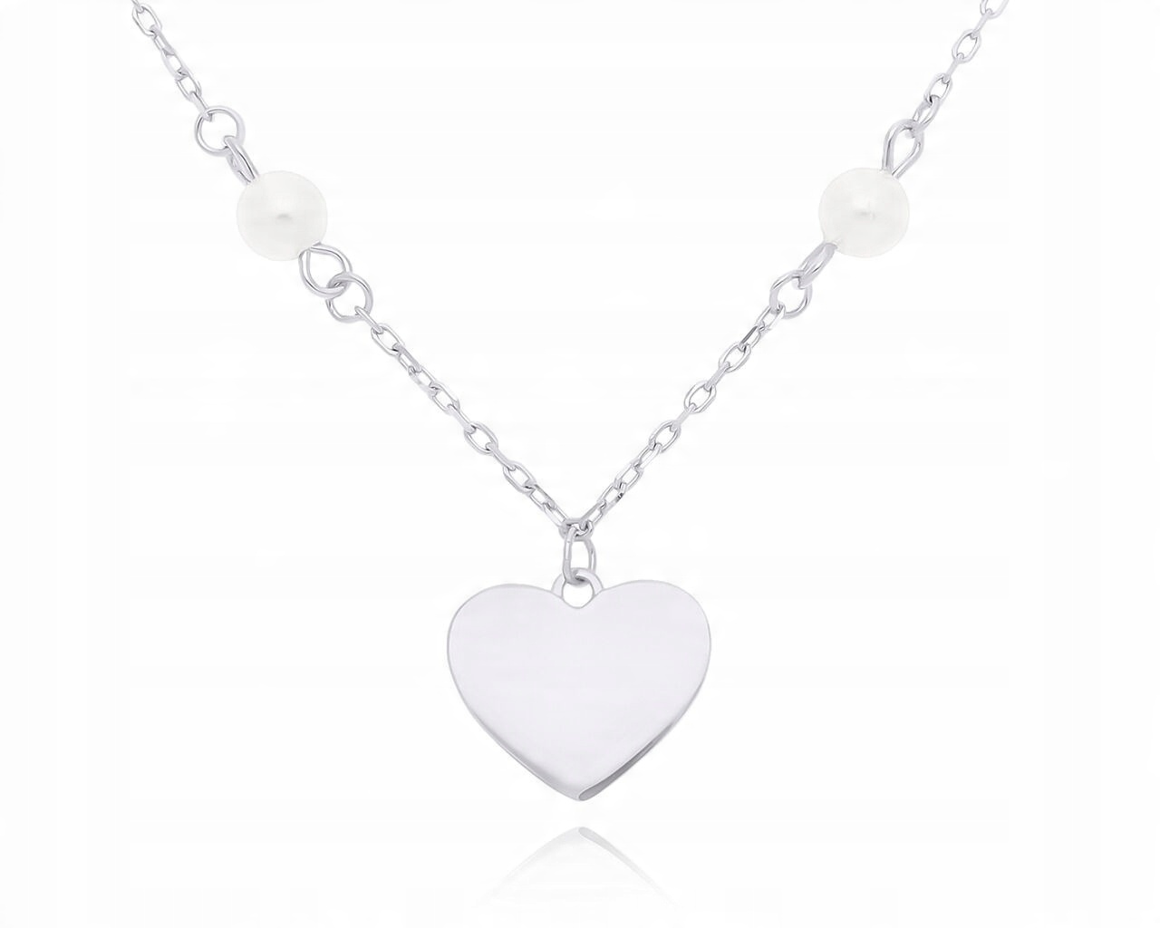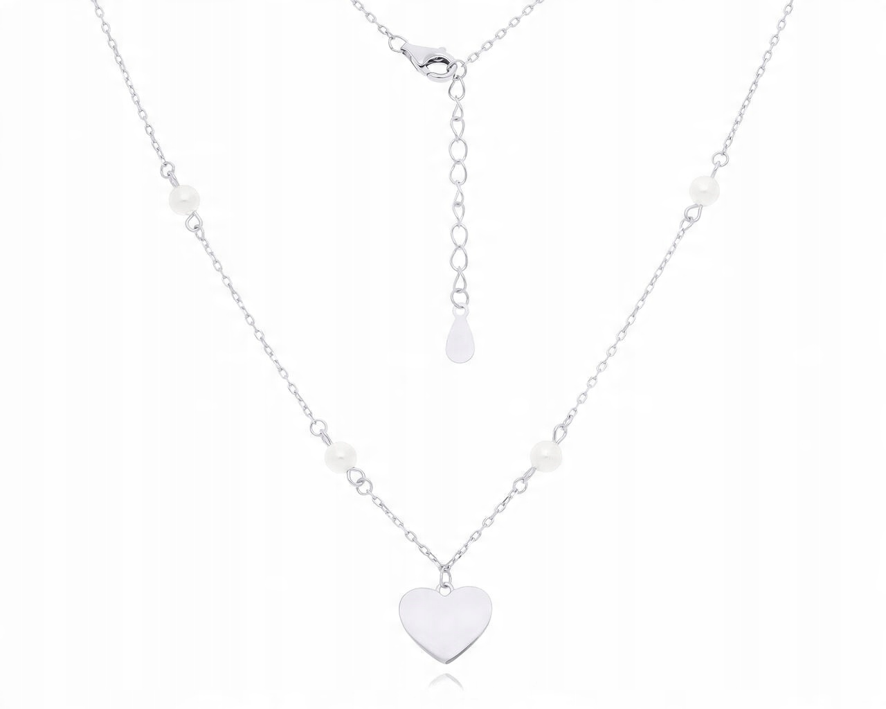 Naszyjnik srebrny z perłami oraz gładkim sercem Srebro 925