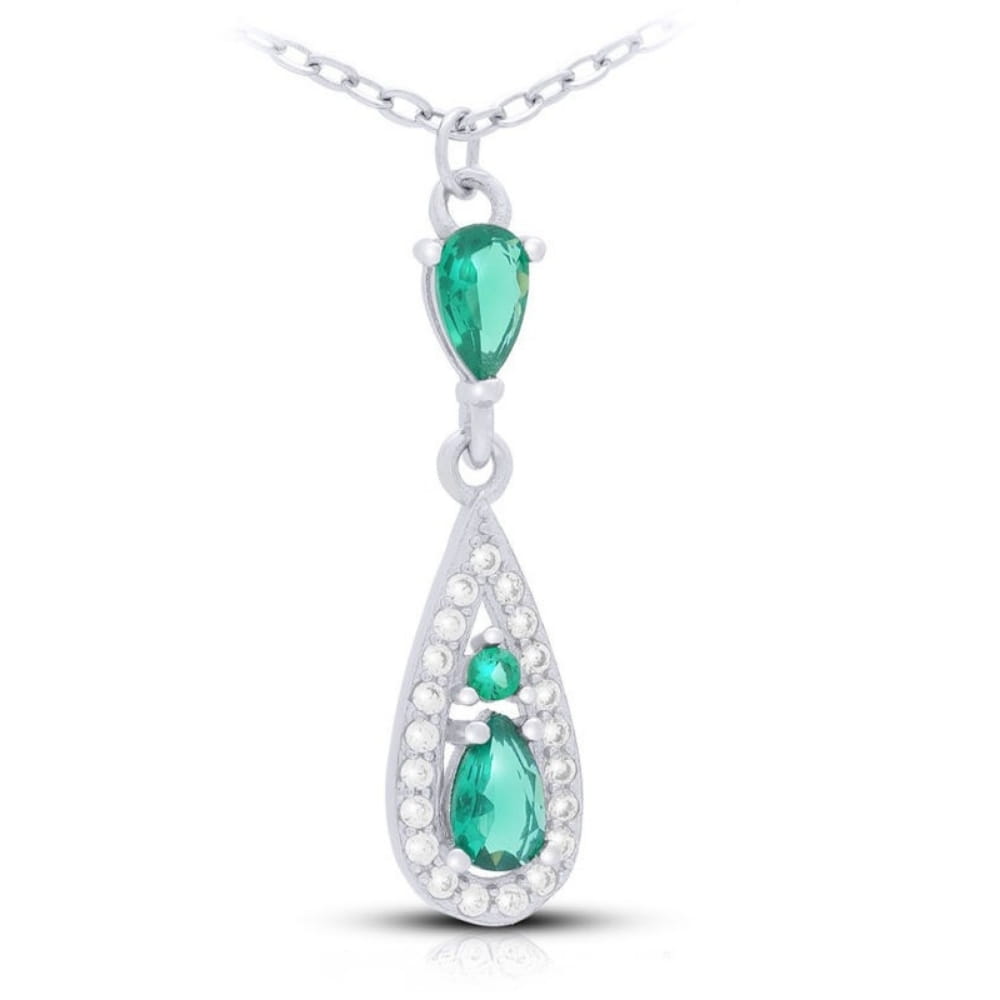 Naszyjnik srebrny z zielonymi cyrkoniami Srebro 925