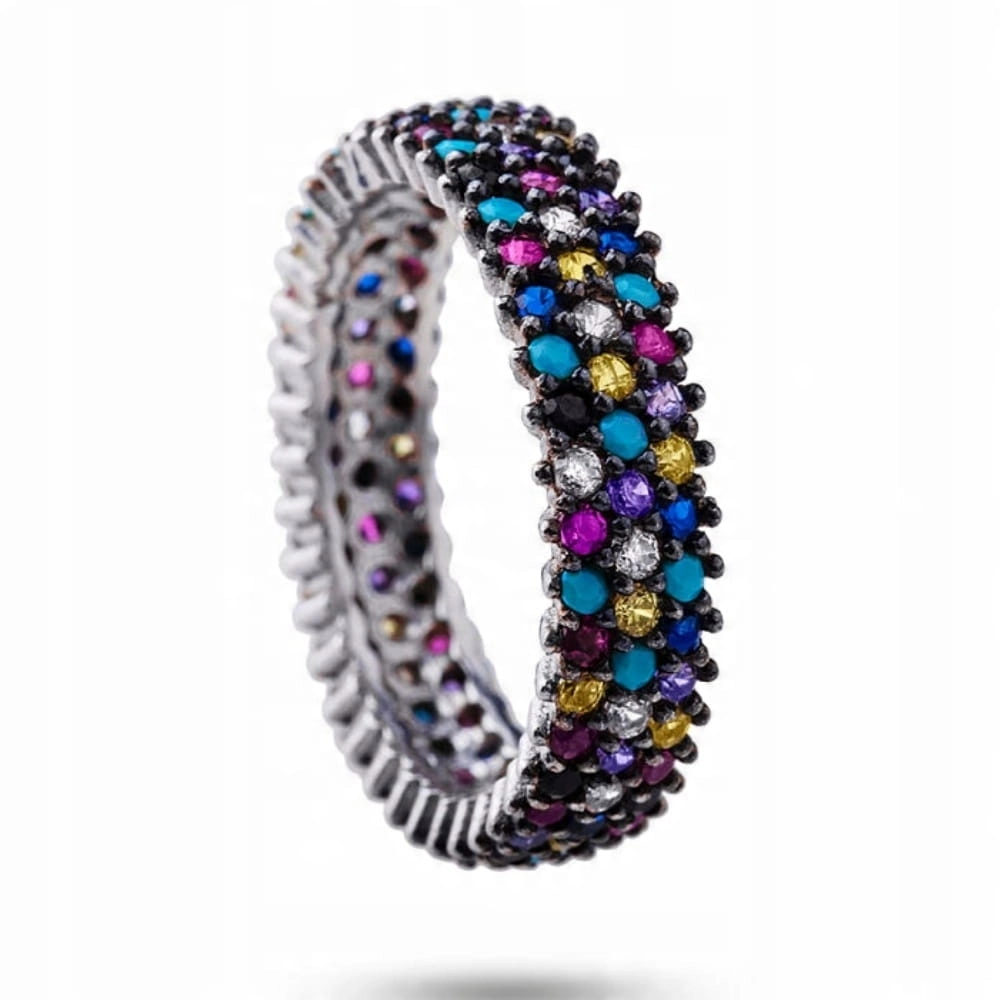 Pierścionek rodowany srebrny z kolorowymi cyrkonia Srebro 925