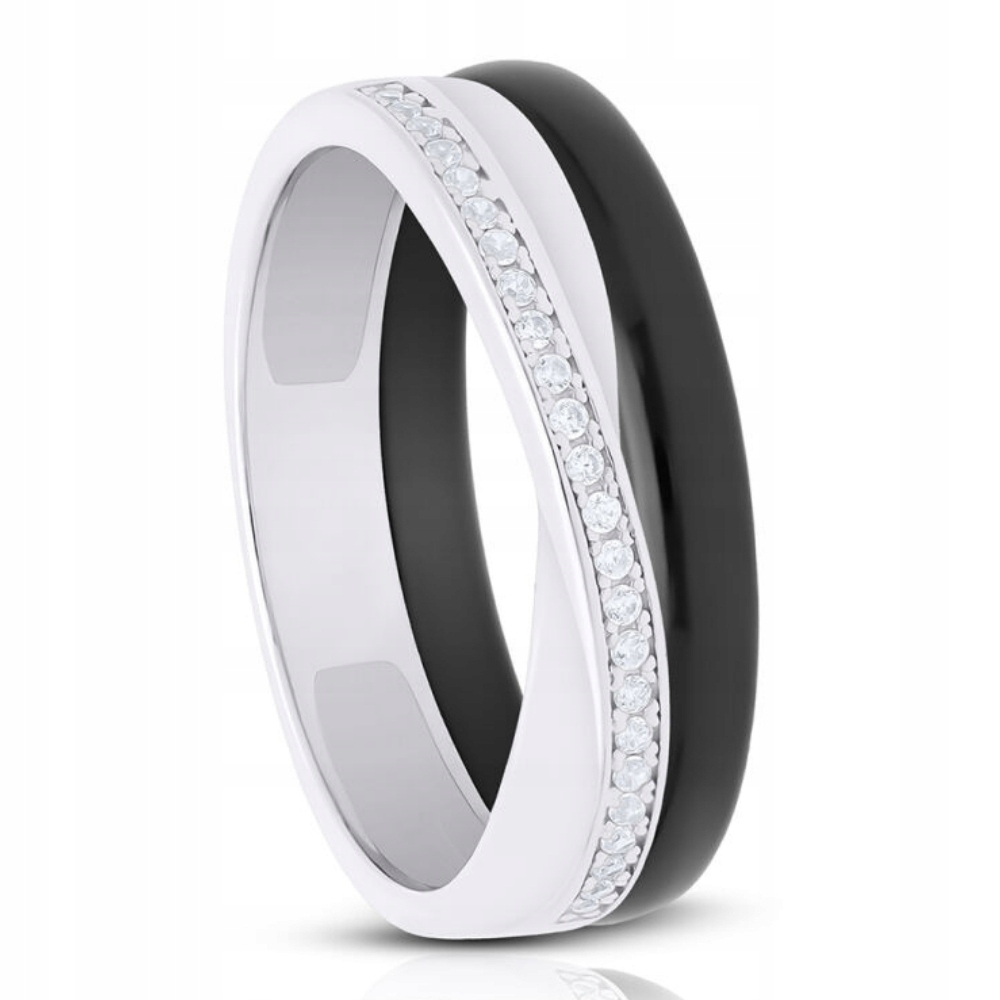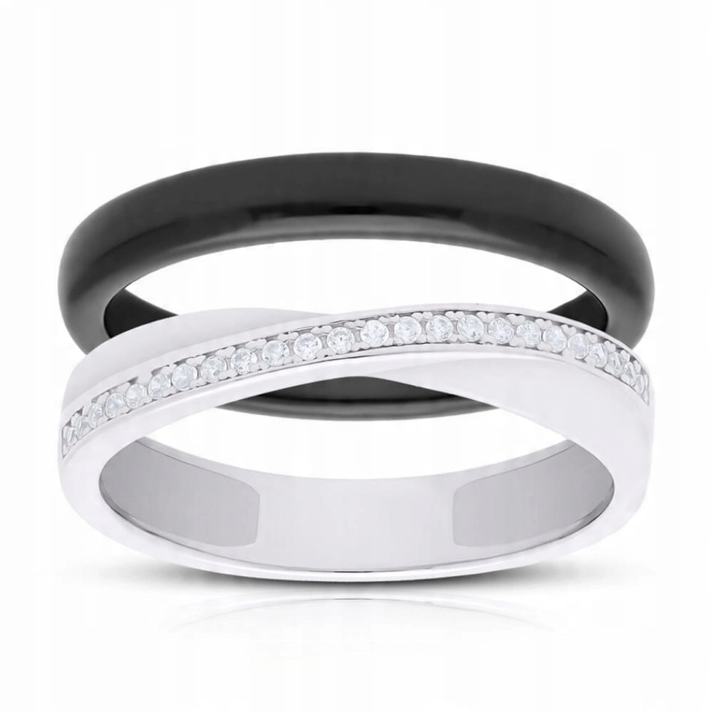 Pierścionek srebrny ceramika podwójny cyrkonie Srebro 925 r.10