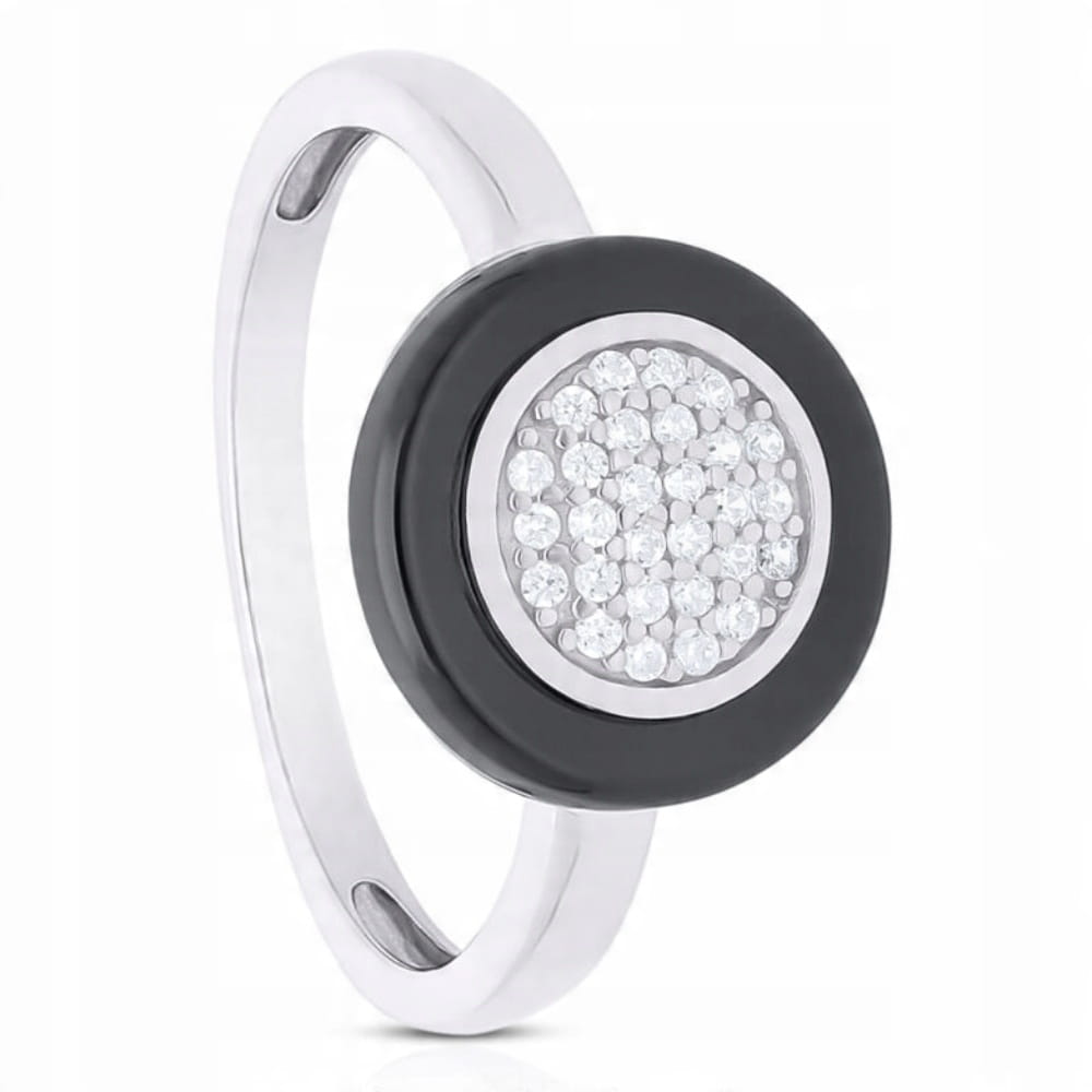 Pierścionek srebrny czarna ceramika i cyrkonie Srebro 925
