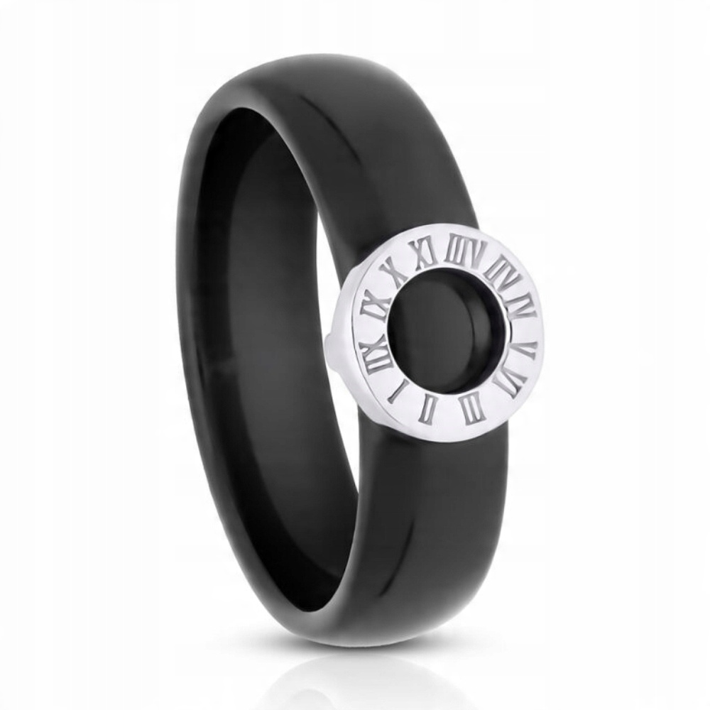 Pierścionek z ceramiki szeroka obrączka Srebro 925 r.13