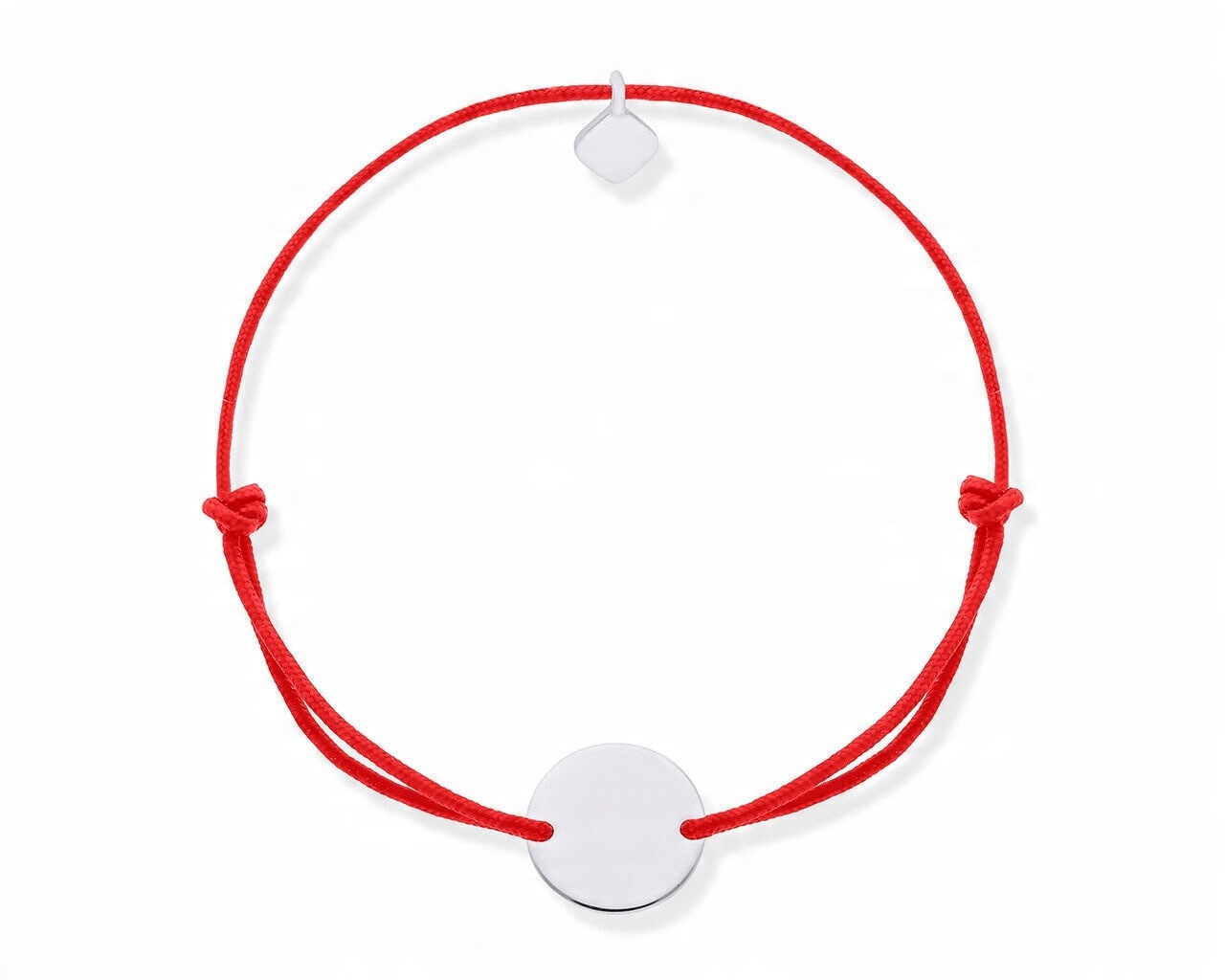 Bransoletka na czerwonym sznurku gładka zawieszka, srebro o próbie 925.
