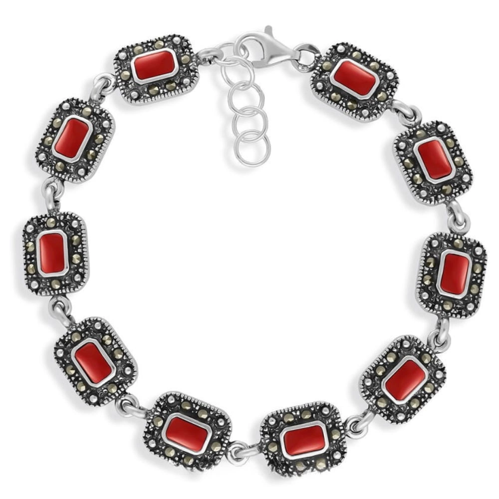 Srebrna bransoletka damska koral i markazyty Srebro 925