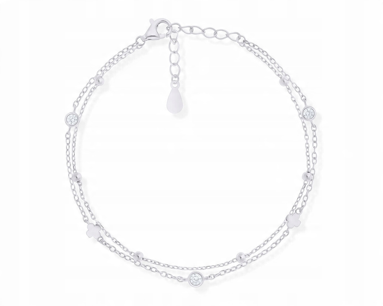 Srebrna bransoletka modna podwójna z cyrkoniami i kulkami srebro 925
