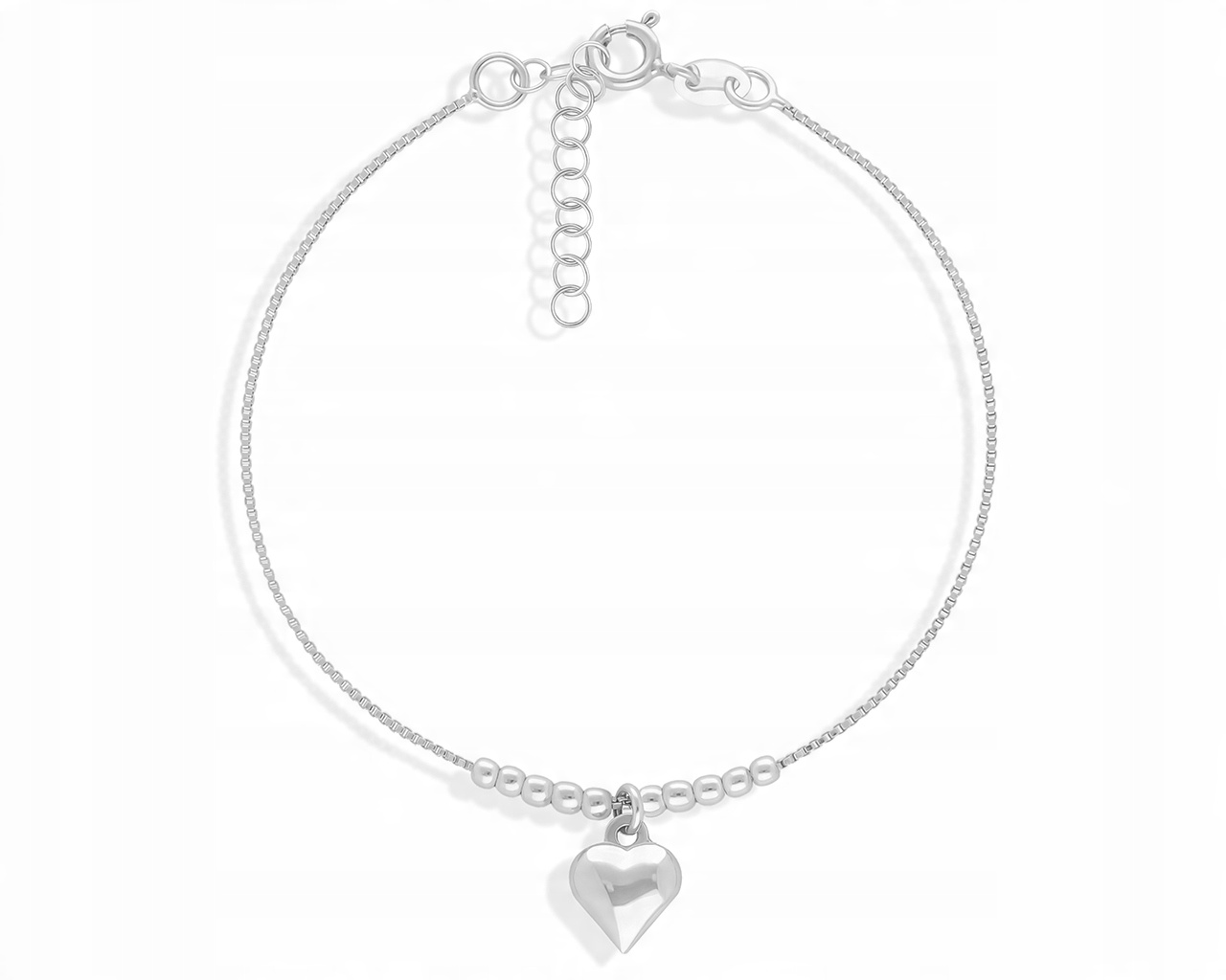 Klasyczna bransoletka ze srebrnym serduszkiem o próbie 925.