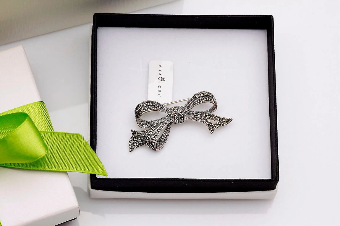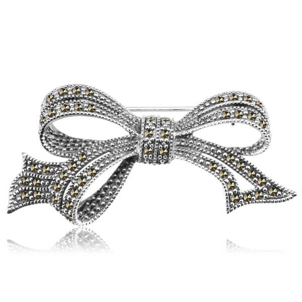 Srebrna broszka z markazytami w kształcie kokardki Srebro 925