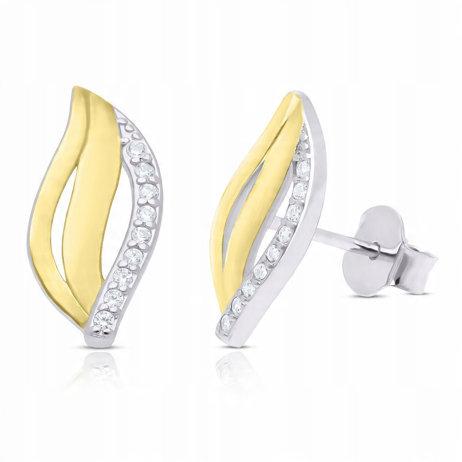 Kolczyki srebrne pozłacane sztyfty z cyrkoniami, srebro o próbie 925.