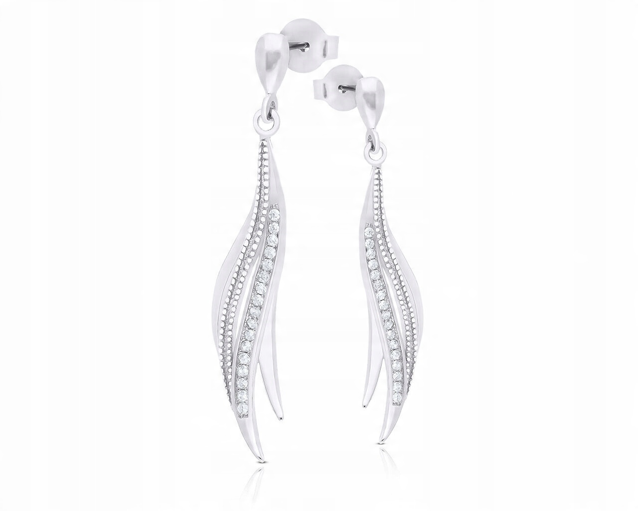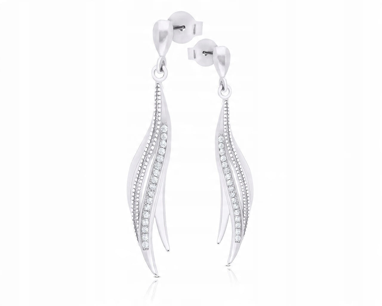 Kolczyki srebrne wiszące długie z cyrkoniami, srebro o próbie 925.