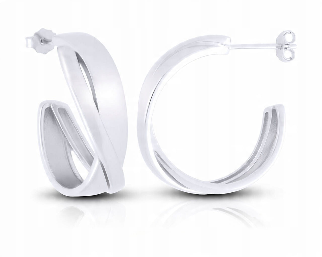 Srebrne kolczyki wiszące modne gładkie półkola biżuteria damska srebro 925