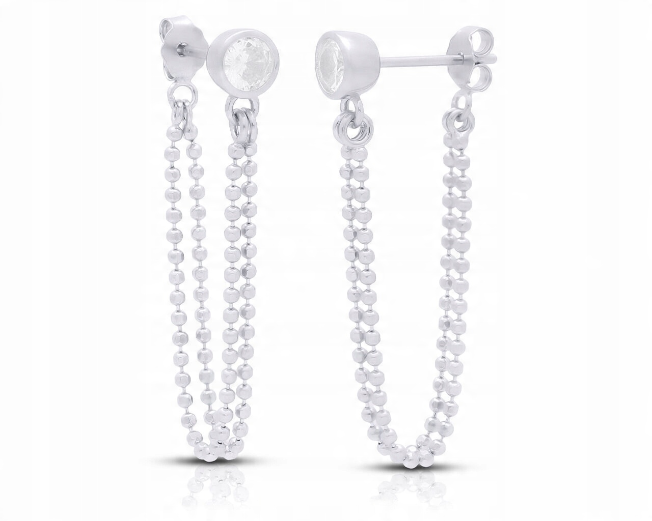 Srebrne kolczyki wiszące na sztyfcie z cyrkoniami srebro 925