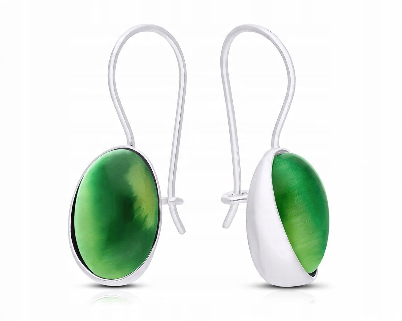 Srebrne kolczyki zielone tygrysie oko wiszące srebro 925