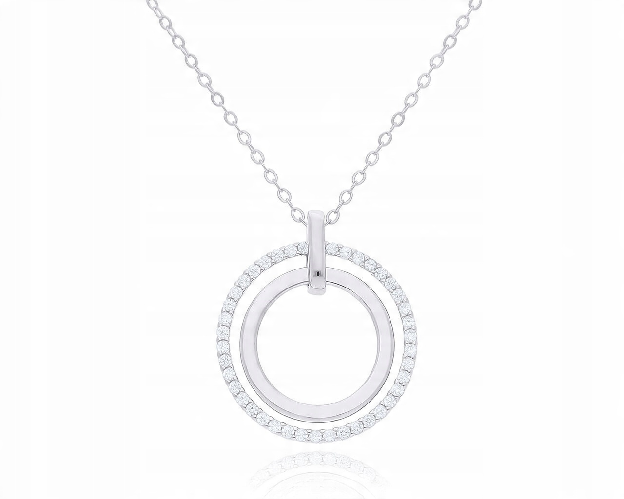 Naszyjnik srebrny okrągła zawieszka cyrkonie, srebro o próbie 925.