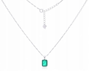 Srebrny naszyjnik błyszczący ciemnozielony kryształ górski srebro 925