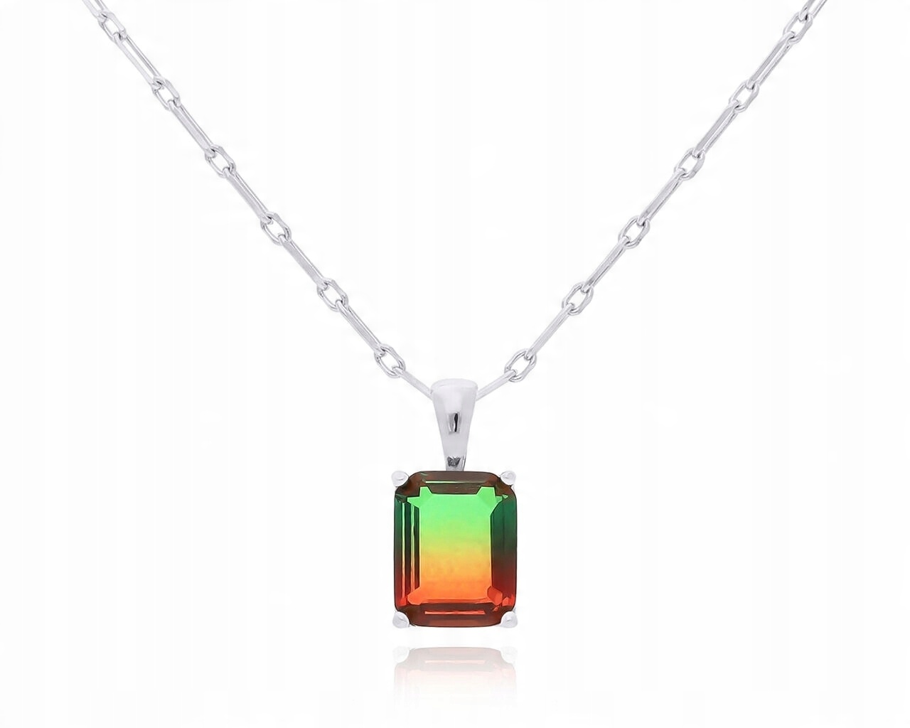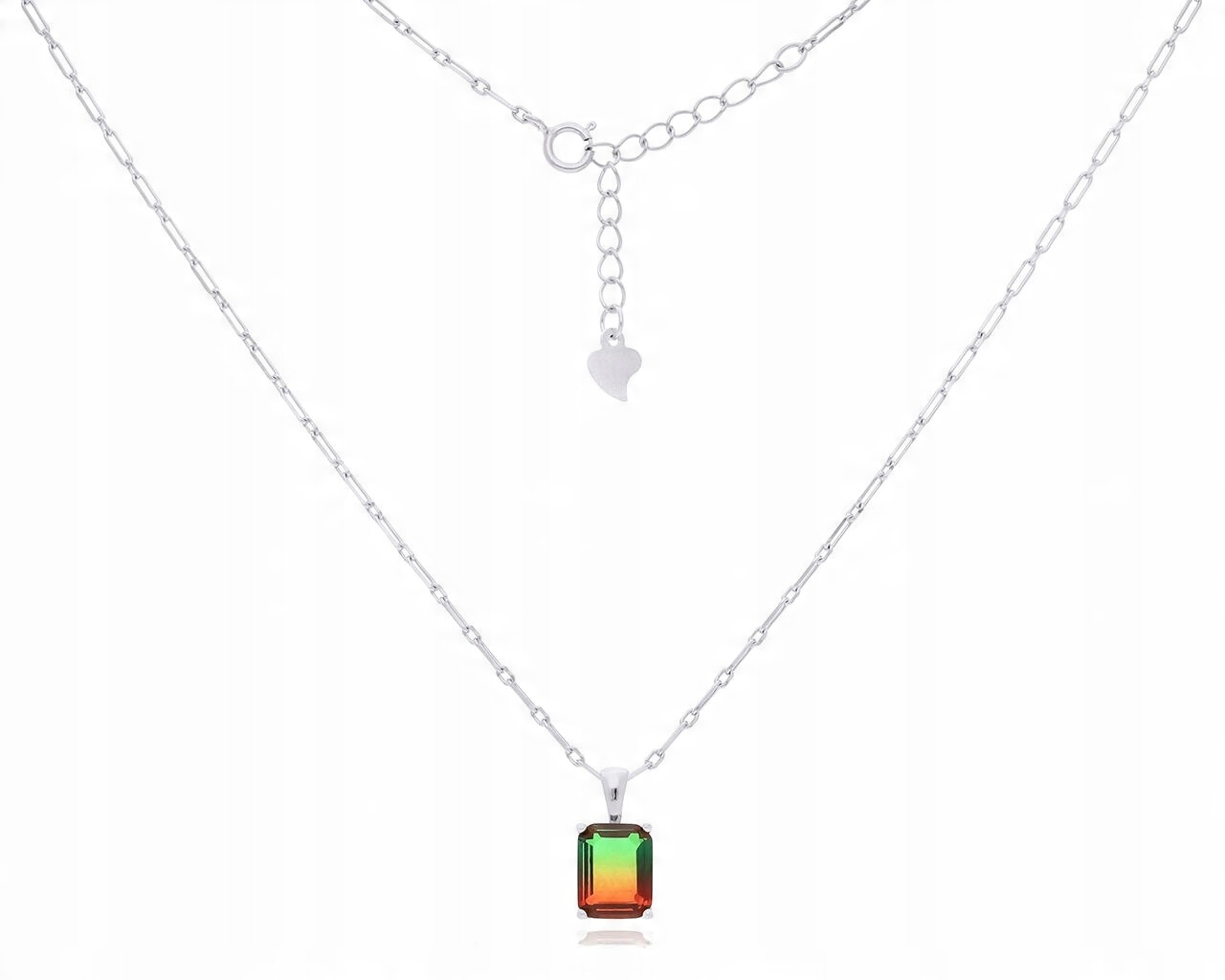 Naszyjnik srebrny z czerwono-zielonym turmalinem, srebro o próbie 925.