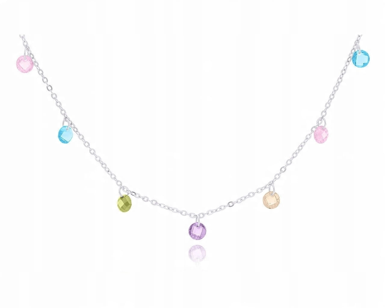 Srebrny naszyjnik błyszczący kolorowe kamienie cyrkonie srebro 925