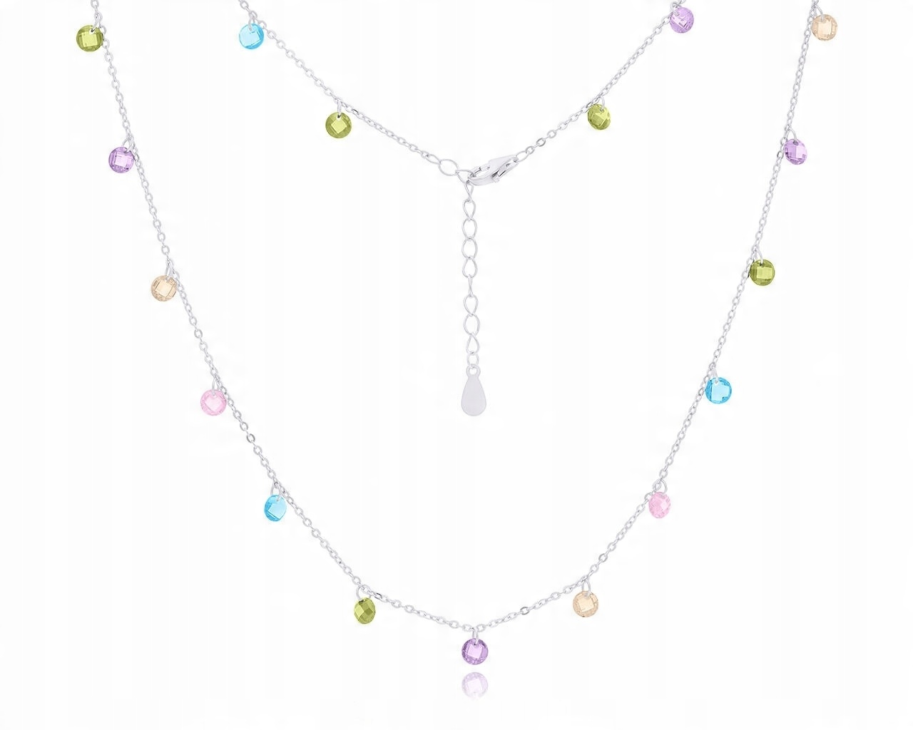 Naszyjnik srebrny z kolorowymi kamieniami, srebro o próbie 925.
