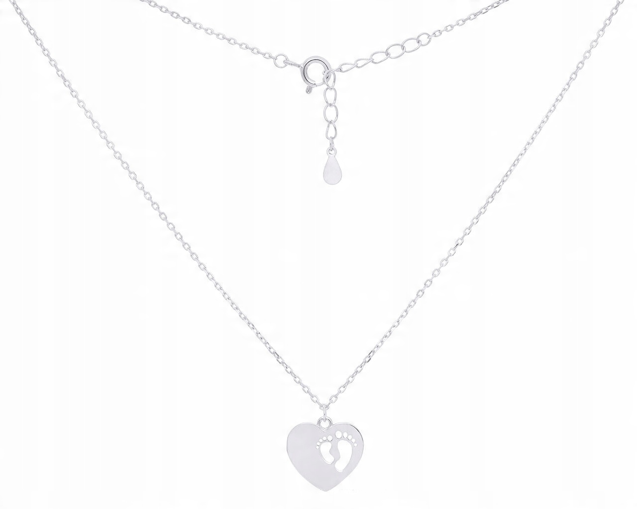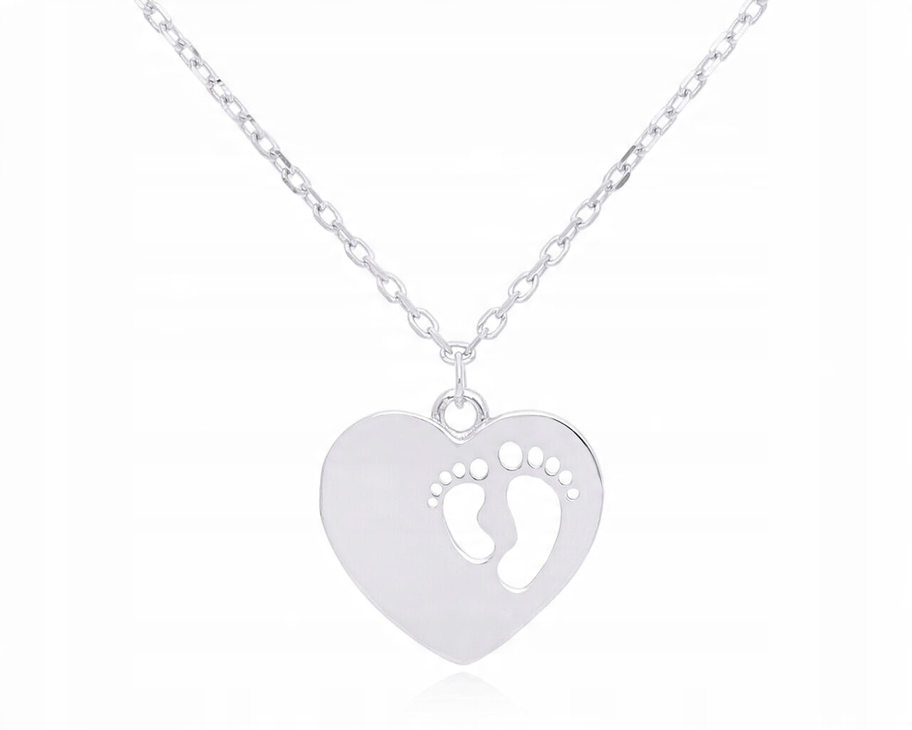 Naszyjnik srebrny z sercem i stópkami, srebro o próbie 925.