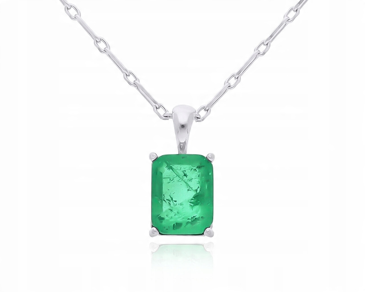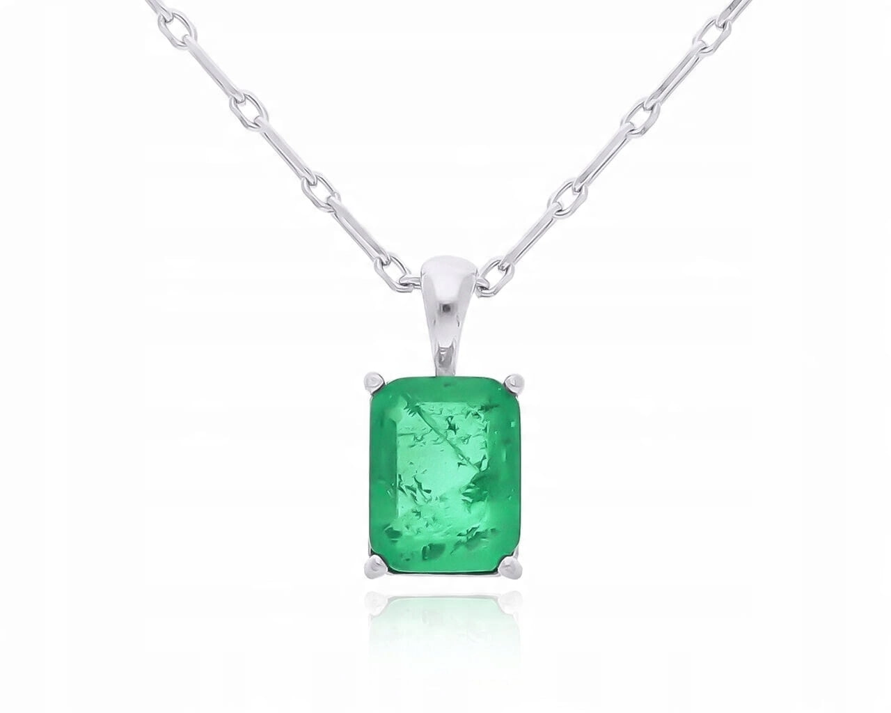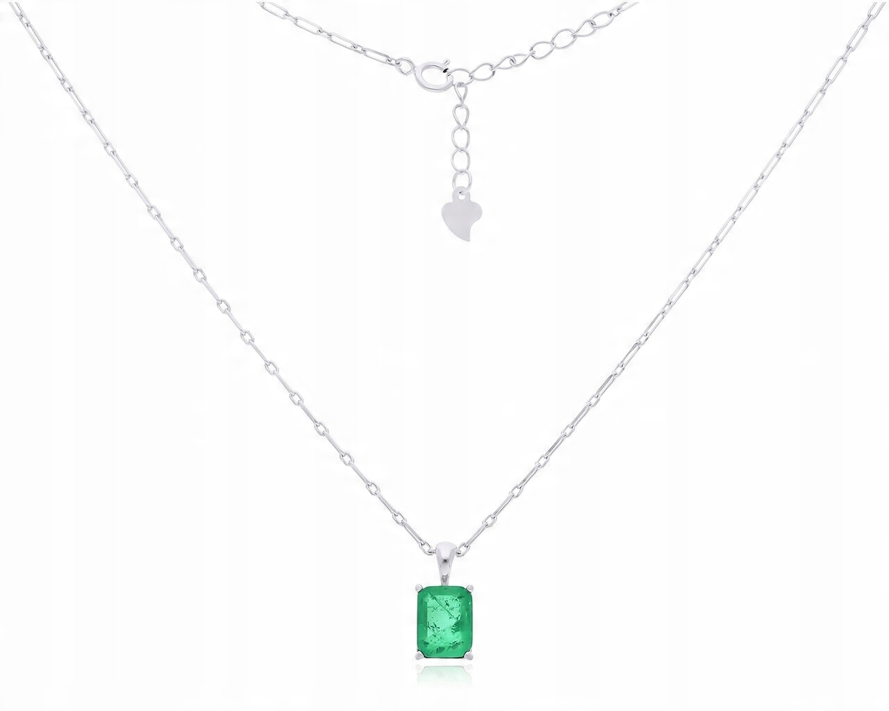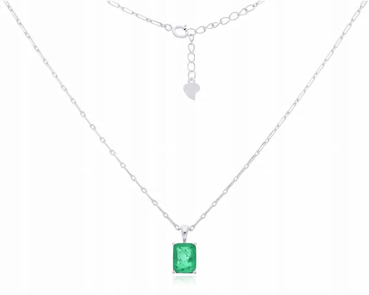 Srebrny naszyjnik modny błyszczący zielony kamień górski srebro 925