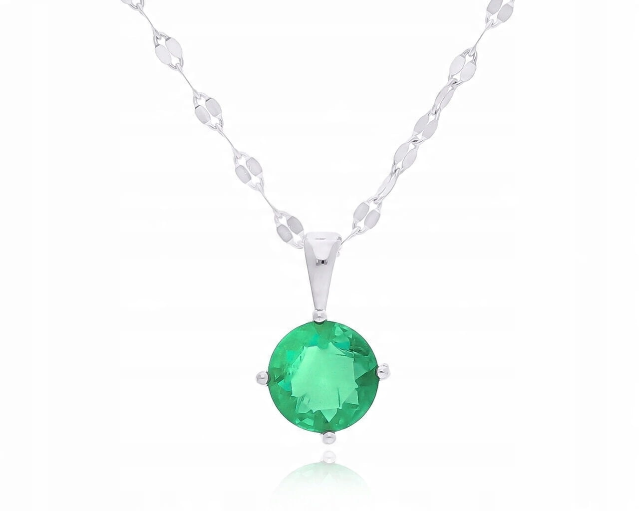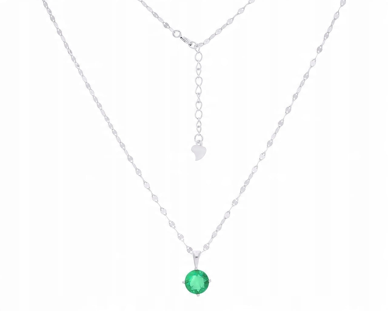 Srebrny naszyjnik modny błyszczący zielony kryształ górski srebro 925