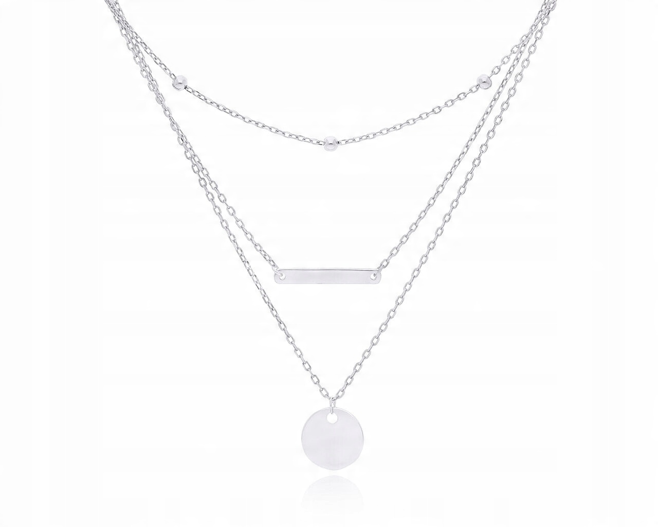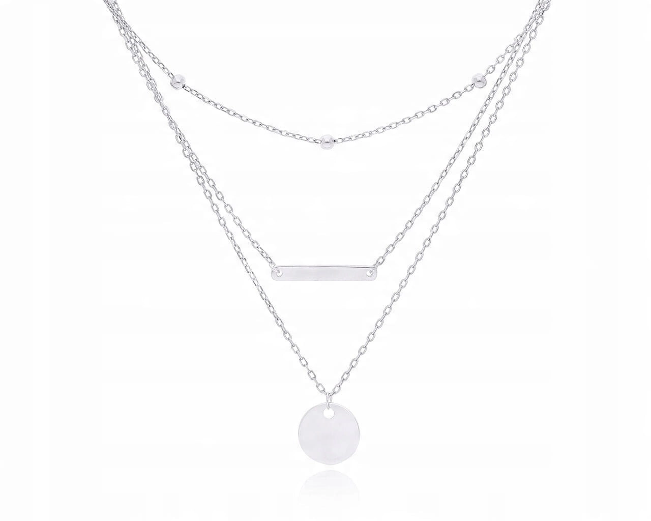 Srebrny naszyjnik modny potrójny łańcuszek gładka przywieszka srebro 925
